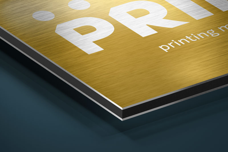 Goldenes, 3 mm starkes Alubond. Partiell oder vollflächig bedruckbar.